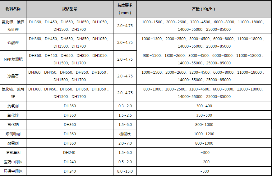 ◆颗粒强度高,堆积比重的提高较其它造粒方式都更为显著,尤其适合于增加产品堆积比重的场合。